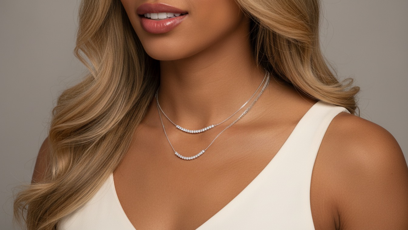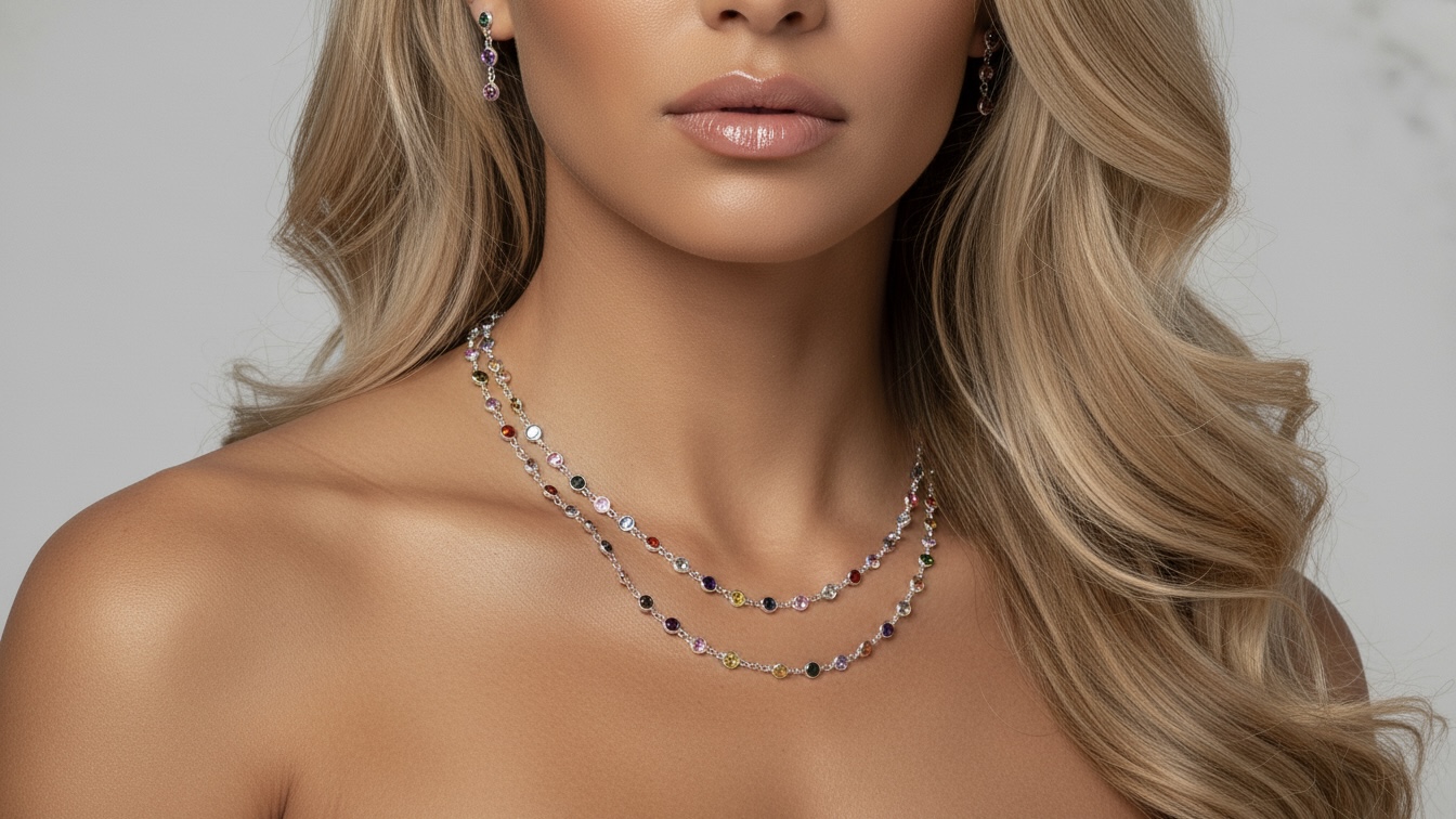 گردنبند تنیس ۲رج نقره ایتالیایی