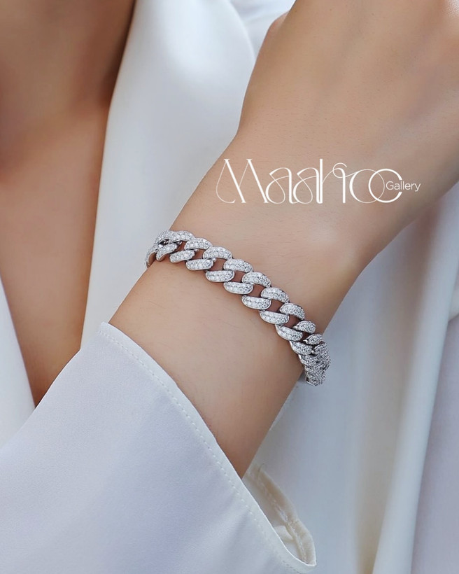 دستبند کارتیه تمام سنگ از جنس نقره، با طراحی منحصر به فرد و لوکسی که میتونه هر استایلی رو تکمیل کنه.